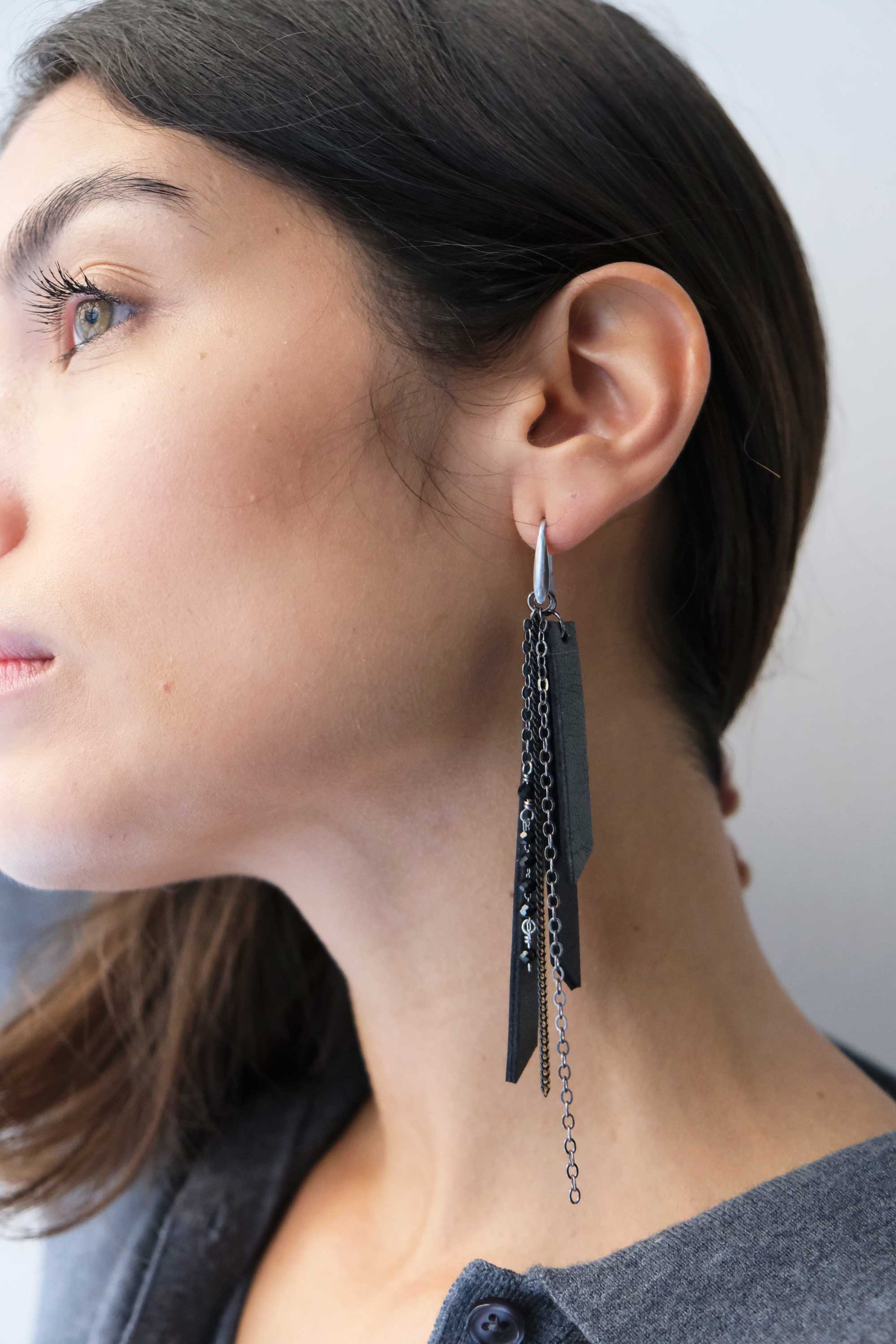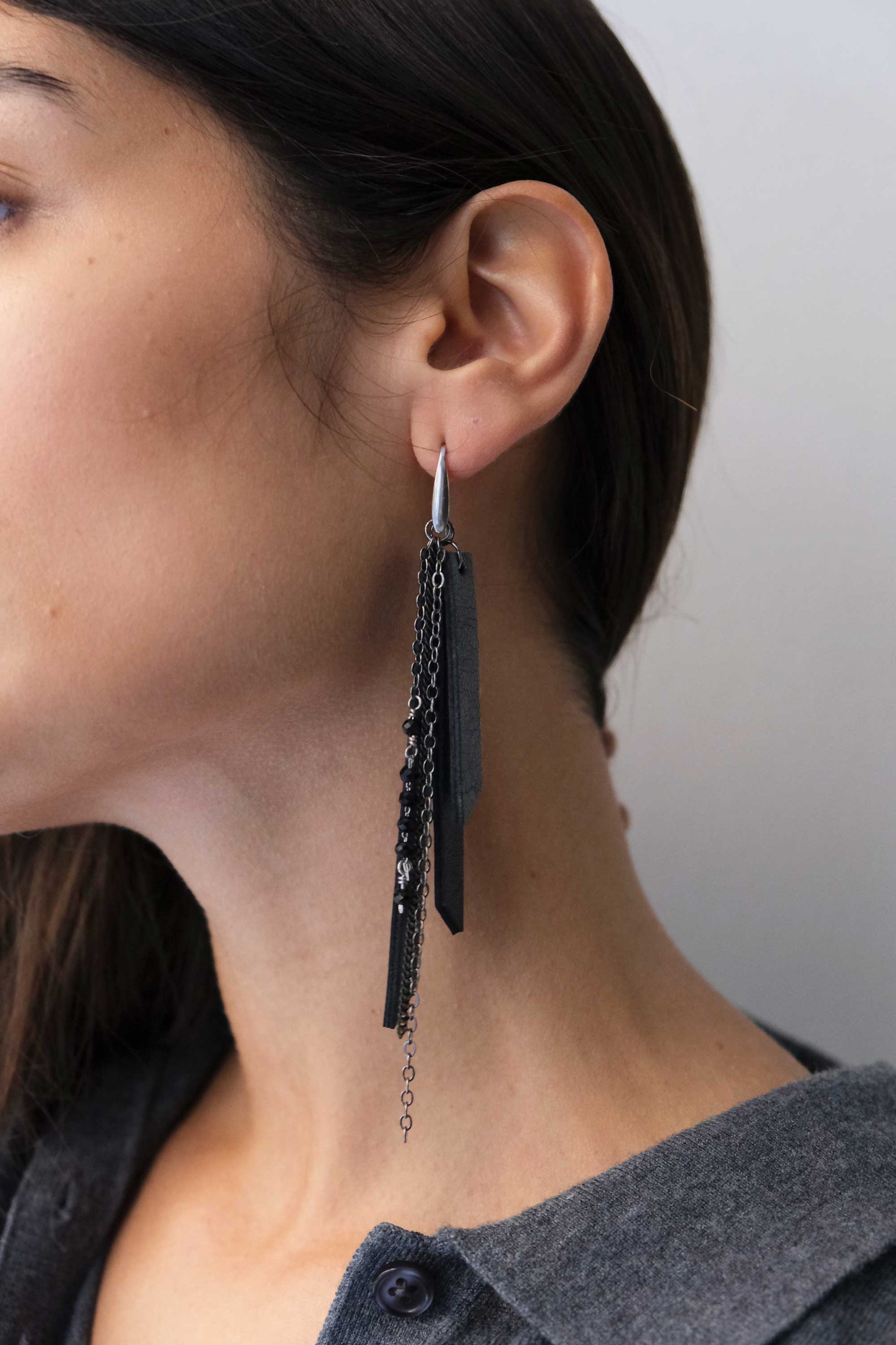 These earrings are entirely handcrafted by Giulia Boccafogli, pairing different pieces and colors of leather sourced from leftover bag production materials. They bring Mialuis' mission to life: creating objects based on the principles of circular economy, giving new value and purpose to discarded materials.