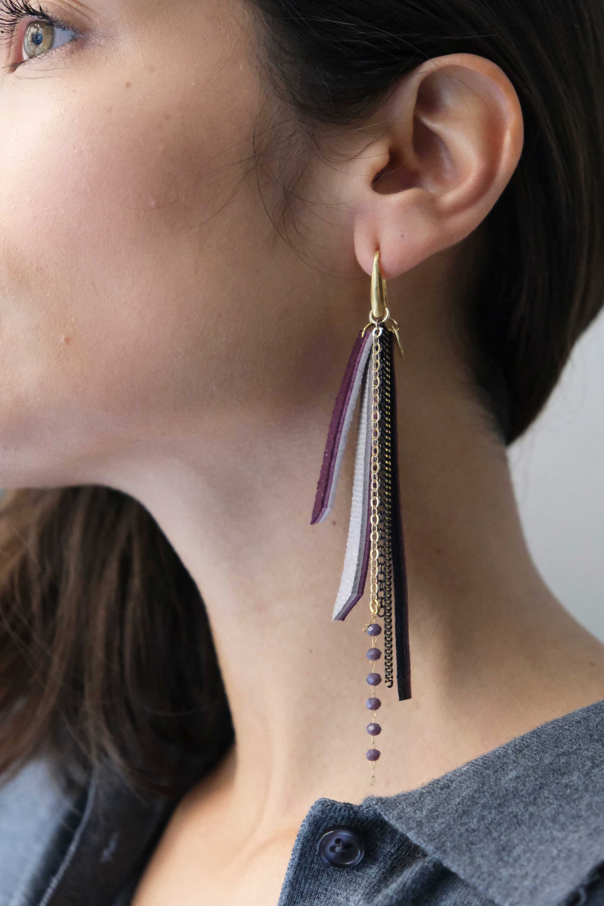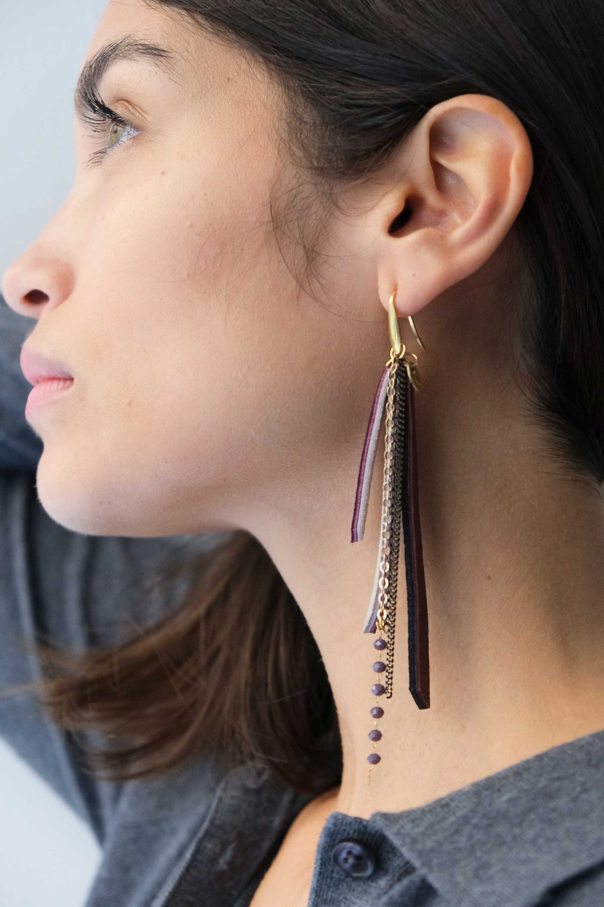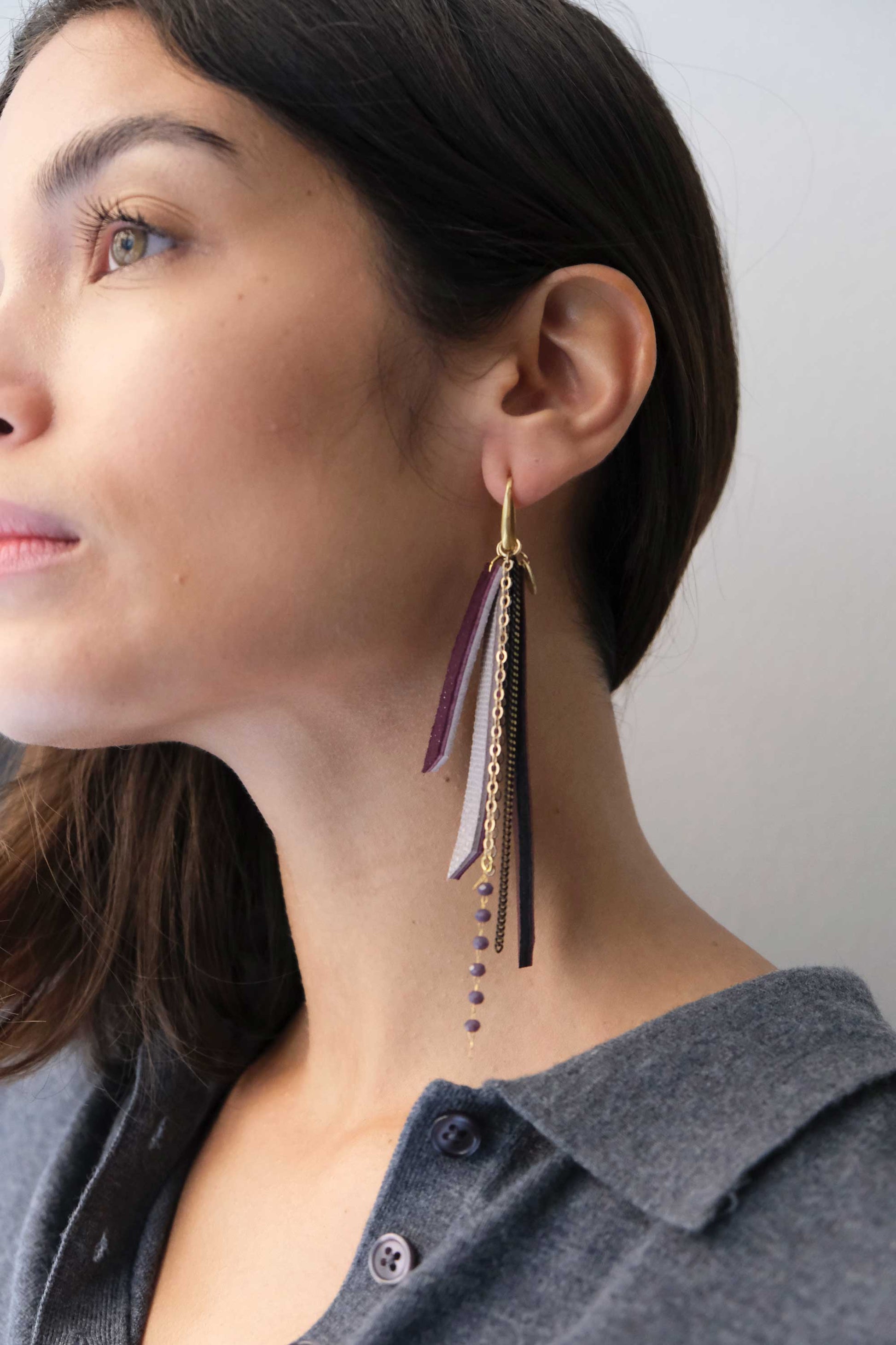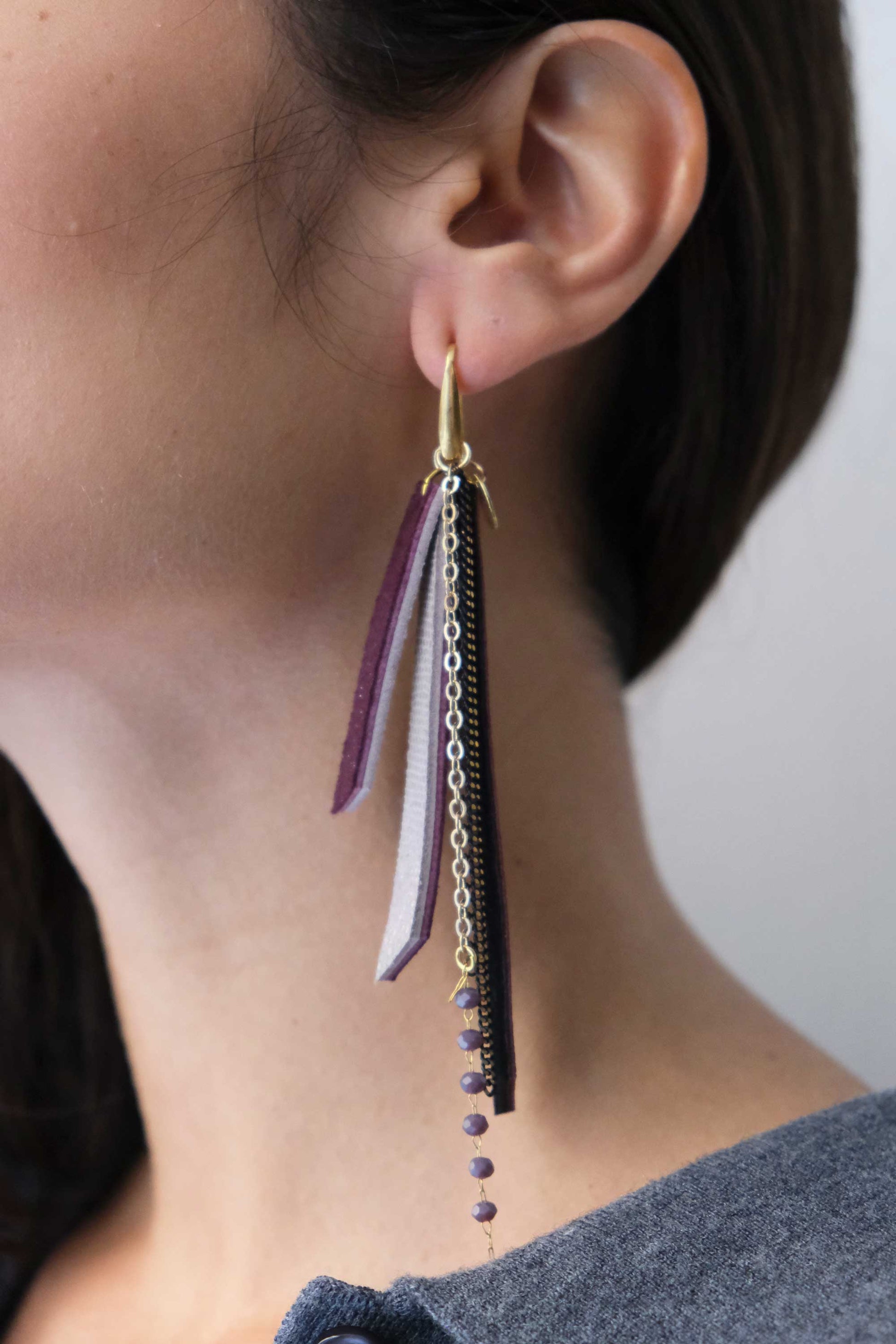 These earrings are entirely handcrafted by Giulia Boccafogli, pairing different pieces and colors of leather sourced from leftover bag production materials. They bring Mialuis' mission to life: creating objects based on the principles of circular economy, giving new value and purpose to discarded materials.