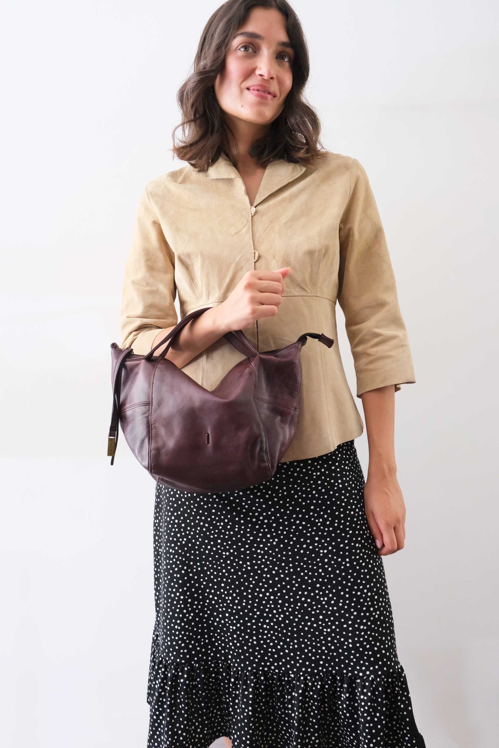 Marty bag in plum turner calf soft leather - Made in Italy -