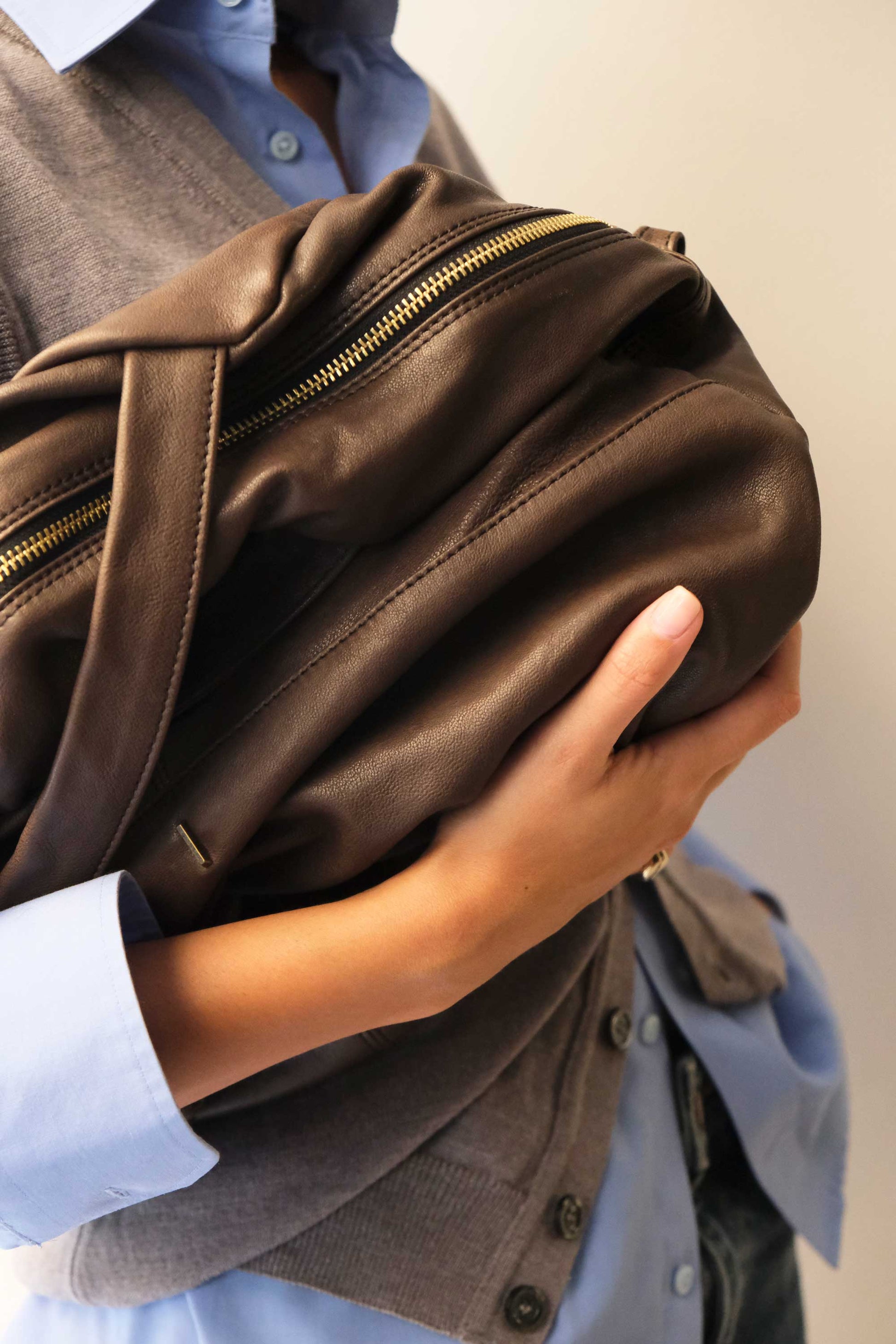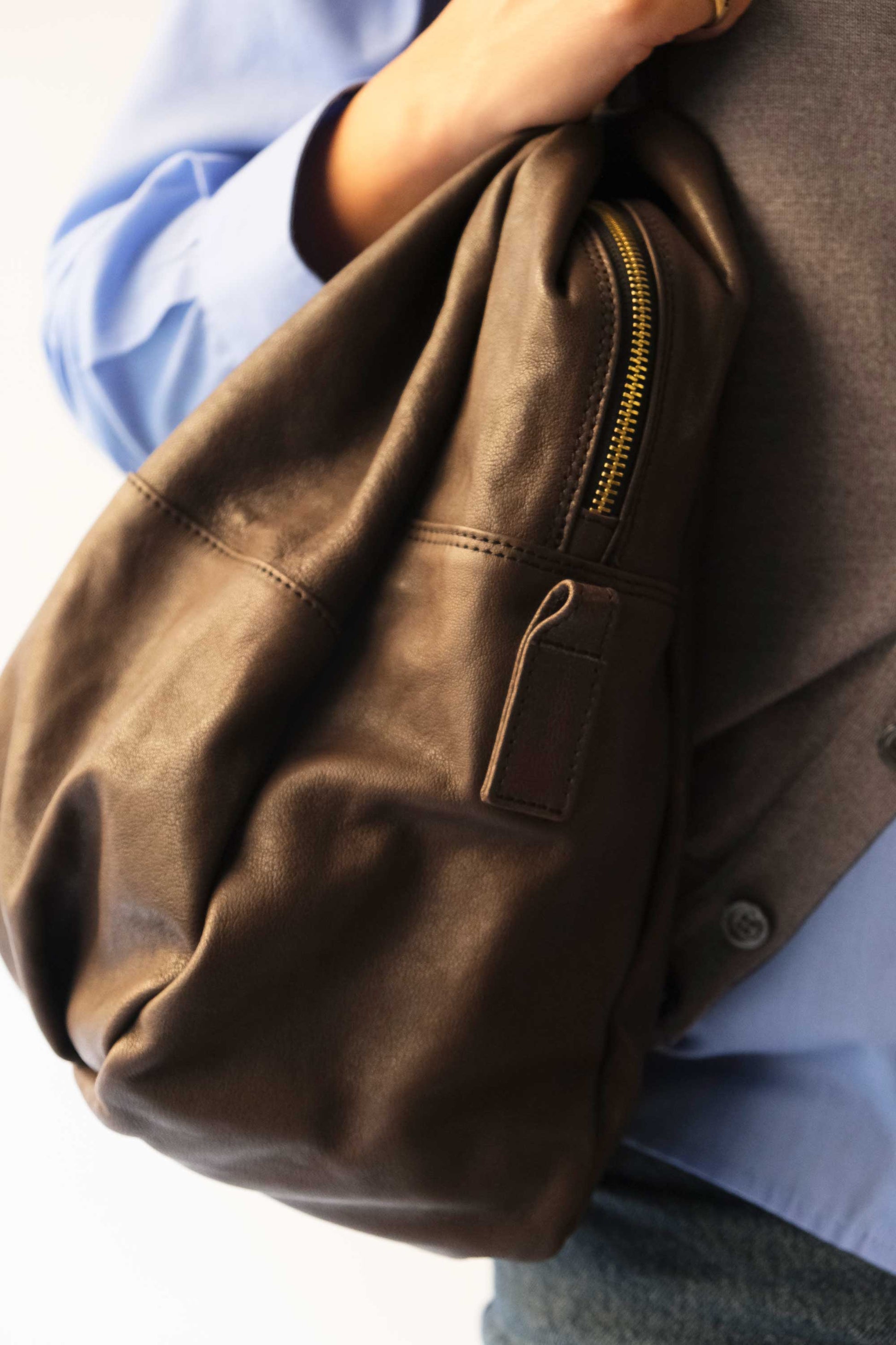 The leather doesn’t submit chemical and harmful treatments, it keeps its natural features which include also variations of color nuances in veining. These variations don’t constitute a leather defect instead make each bag unique just like its bearer.