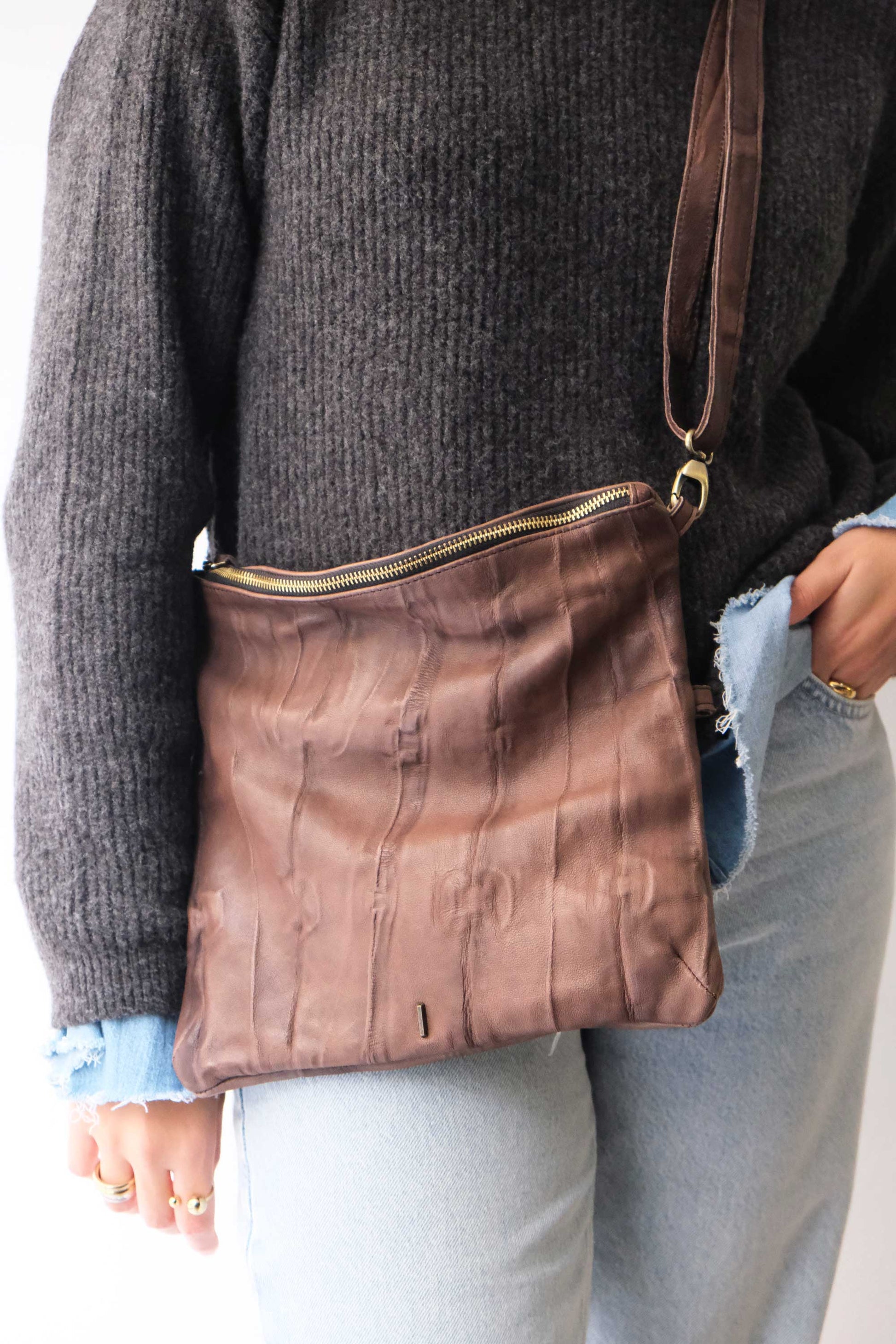 Stella modular pochette in brown nappa washed soft leather leather - Made in Italy -