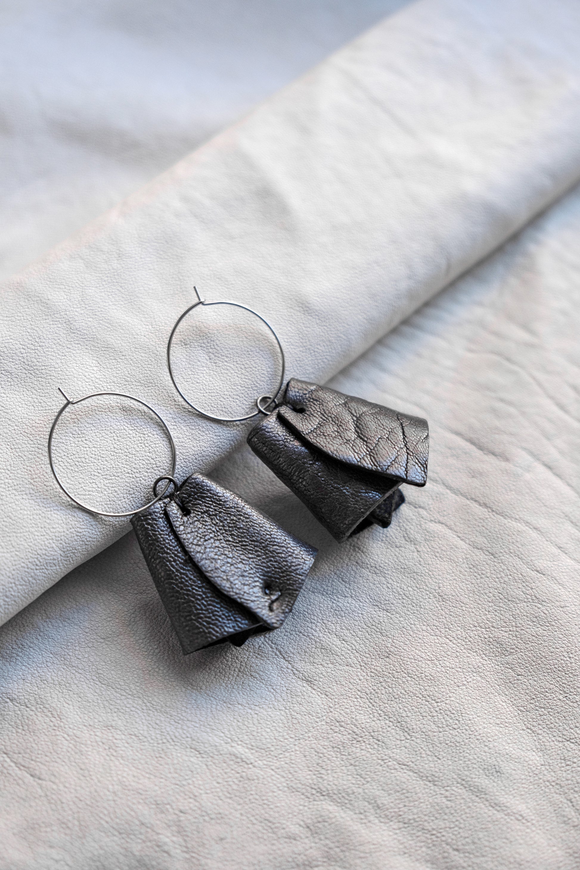 These earrings, with a fresh and clean design, are made from soft Italian leather sourced exclusively from leftovers and scraps.