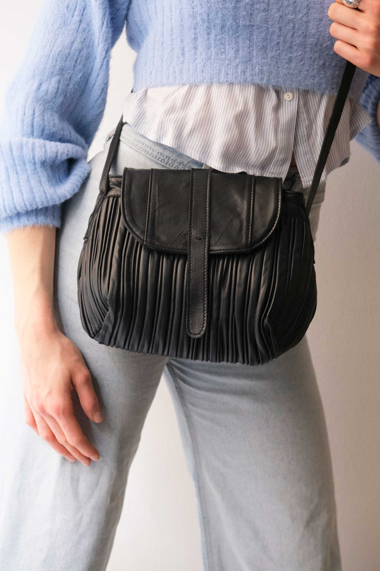 Do mini saddle bag in pleated black colour nappa leather - Made in Italy -